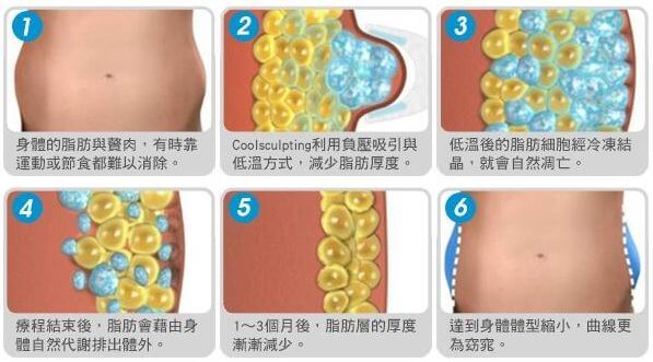 使用特定低溫冷凍波,將脂肪細胞冷凍凝結,凋亡後再隨淋巴排出體外