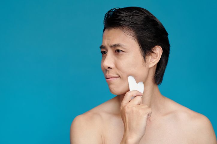 想臉容保持緊緻,虎紋深人士可在晚間潔臉後多做一步: 1. 潔臉後可以先用熱毛巾敷臉5分鐘,然後把適量嬰兒油塗於臉上。 2. 手握刮痧板,以向上提拉的手法,拉提嘴角附近的嘴邊肉,同時按摩法令紋至蘋果肌下方,力度輕柔即可,按摩約5分鐘後把臉洗淨。